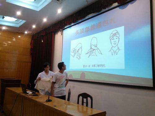 这次讲座邀请了医学院讲师团和我院上年度队长代表孟菲对工设院和我院本年度将要进行三下乡的同学进行安全讲座。医学院讲师团分别从包扎伤口,处理溺水,和处理毒虫咬伤等方面做了介绍,他们的讲演生动形象,与同学们进行了良好的互动,让同学们了解了处理突发状况方式方法。我院队长代表孟菲就三下乡实际中遇到的一些问题为在场同学进行了生动的讲解。