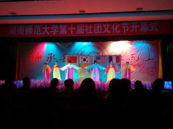 (通讯员 窦心悦 王黛 庞炜婷)4月11日晚7点,由校学社联主办的yl23411永利第十届社团文化节于江边活动中心开幕。本次社团文化节的主题为“师承岳麓,拾级而上,志同道合,风雨无阻”。副校长周俊武教授、校团委晏昱书记、校团委罗繁荣副书记、学工部何旭娟部长以及各院党委副书记和各兄弟院校学生代表出席率本次开幕式。