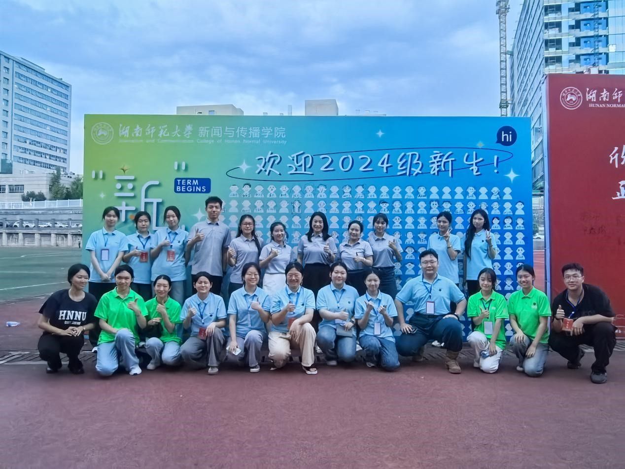 在迎新准备工作中,学院精心设计,从六个方面对新生的到来表示欢迎。一是准备一见倾“新”互动画板,并引导新生自画像,组成手绘全体合照;二是学院以“新传新传,名不虚传”、“新传新‘生’音”等文案设计迎新KT板,打造学院独具特色的拍照打卡点;三是学院为新生定制了特色帆布袋,正面以大美师大文创为主要标志,背面则以“书山天下”的字样和书山图标为主要设计,寓意走上书山,向上尚勤;四是准粉色备文化衫,搭配白色的学校简称“HNNU”,白粉相间,为我院注入新活力;五是召开新生家长会,邀请新生家长与学校面对面交流,助力家校共建;六是在迎新工作的统一部署方面,9月6日中午,学院召开2024级本科新生迎新工作会议,对迎新工作人员及志愿者开展培训,落实具体分工和安排。9月6日下午,各班小辅和名誉寝室长为新生们并整理寝室,逐一在门牌和床位贴好宿舍安排,并在主报到点和学院迎新点布置现场,为新生准备物资。9月7日下午,迎新工作正式开始,每位新生到达报到点后,在工作人员的引导下有序上交资料和报到登记,领取文化衫、迎新物资并办理入学手续。迎新志愿者在咸嘉湖校区门口、宿舍区、教学楼等区域引导新生前往报到台完成报道登记,并协助新生搬运行李,完成报到入住流程。