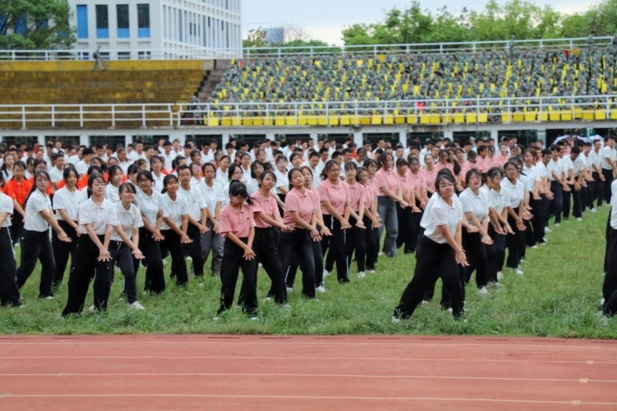 (通讯员 袁仕吉 何一苇)恰同学少年,风华正茂,英姿飒爽,试比天高! 9月22日上午,我校2024级本科生军训成果汇报暨总结表彰大会在二里半校区田径场隆重举行。新传院2024级全体新生参与本次成果汇报。