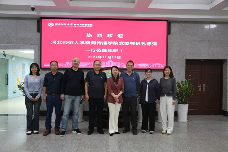 (通讯员 唐千惠)11月15日下午,河北师范大学新闻传播学院党委书记孔德强一行来我院交流座谈。副院长李琦教授、广告系单文盛副教授、部校共建办公室主任王倩老师、研办主任林芳老师出席会议。会议在学院二楼会议室举行。