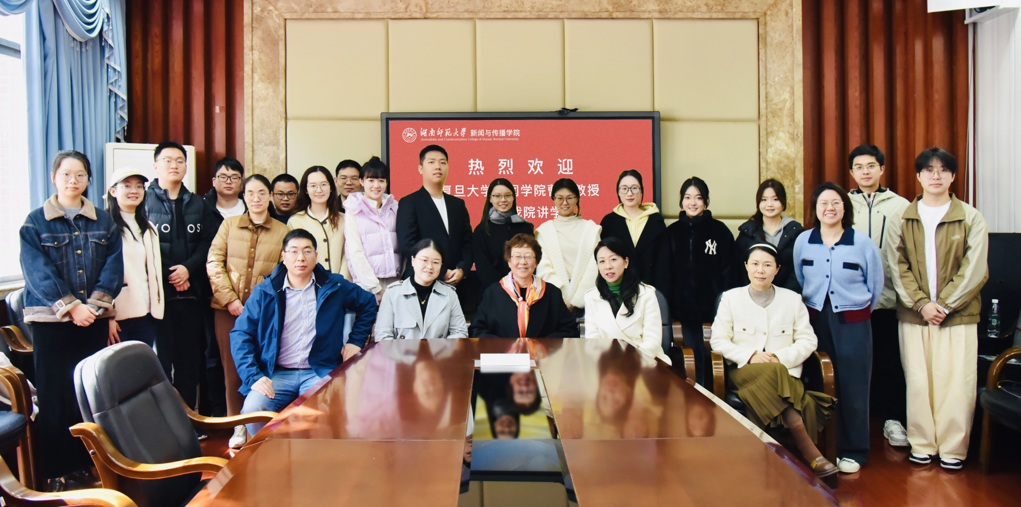 视听传媒系主任岳璐教授、播音与主持艺术系龙念教授、网络与新媒体系主任段峰峰副教授与网络与新媒体系陈婵老师等参与座谈。我院部分教师与在读研究生、博士生参与讲座。