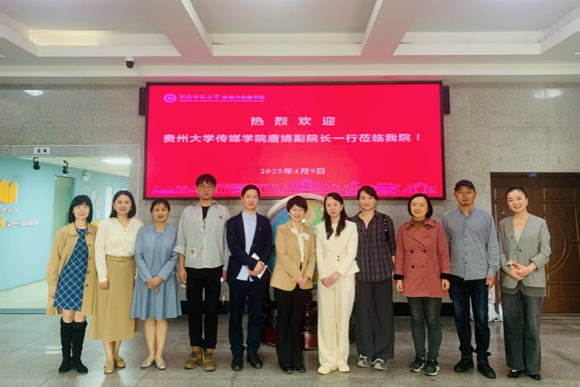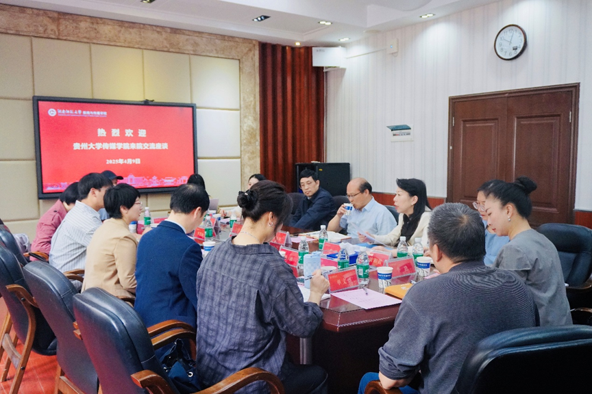 (通讯员 王兆星 鲍秋彤)为推动学术互鉴与合作,交流教学心得,4月9日上午,贵州大学传媒学院副院长唐娟一行莅临新传院进行交流座谈,座谈会于新传院二楼会议室展开。活动由新传院副院长李琦主持。新传院党委书记李泳波,新闻系教授、博士生导师肖燕雄,播音与主持艺术系主任、教授、硕士生导师颜湘君等各专业教师共九人参与此次活动。