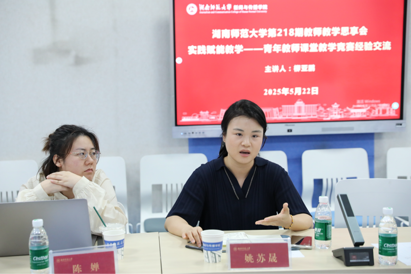 互动环节,与会教师围绕交叉学科、前沿学科方向展开热烈讨论。我院青年教师胡镡文、姚苏晟针对如何打破学科壁垒、实现跨学科教学资源整合,以及如何把握前沿学科动态、将最新学术成果转化为教学内容等问题,与专家教授现场展开深入探讨,碰撞出诸多创新思路。