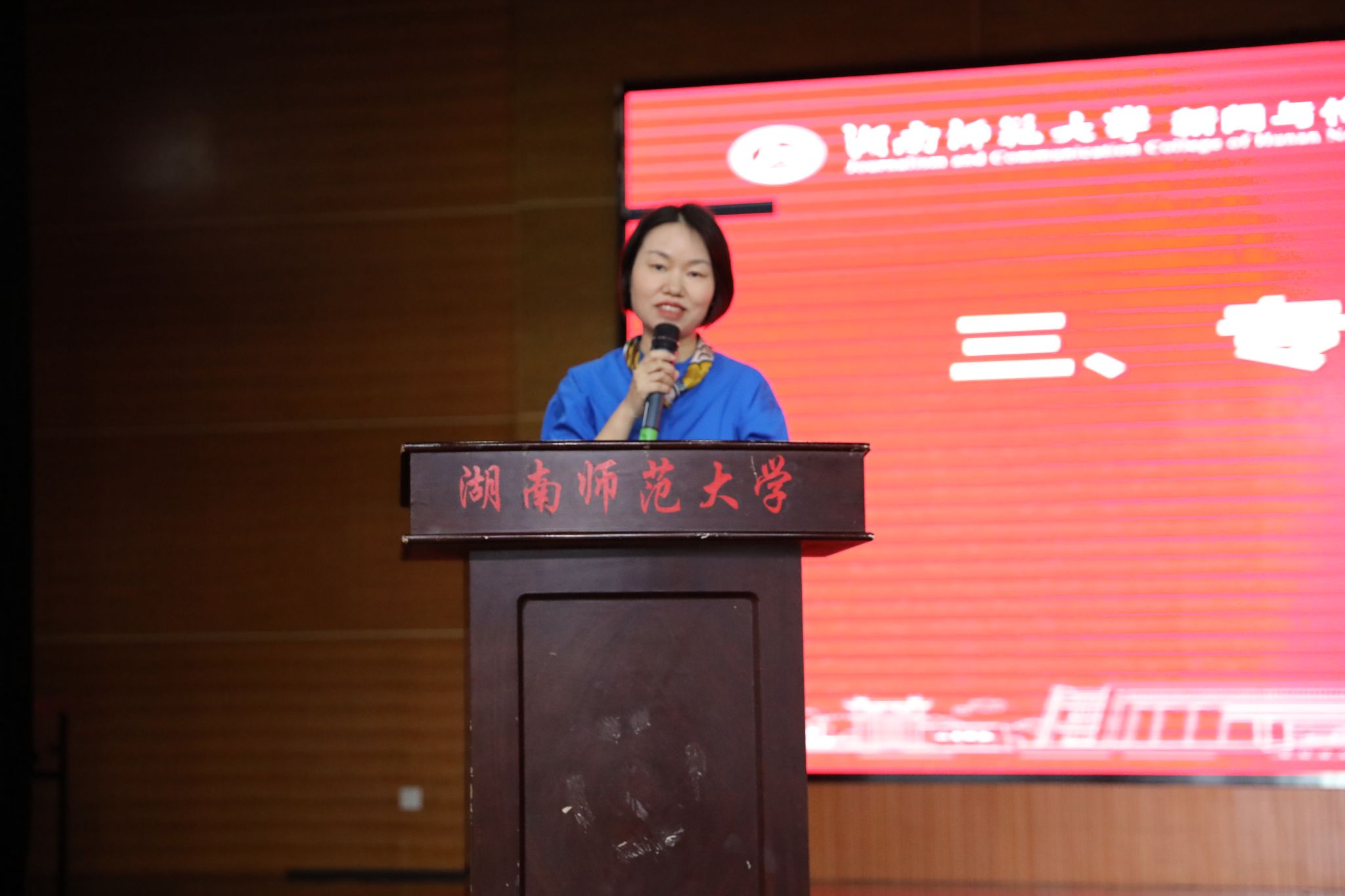 湖南卫视节目中心的李琛导演作为校外指导老师代表,围绕“如何在实习中快速成长”展开分享。他以三句凝练箴言直击实习核心:“多观察行业生态以明方向,多审视自身能力以补短板,勿陷入眼高手低的认知误区”,同时建议同学们要不畏实习工作的艰苦,以实际行动化解工作中的难点。这番兼具实践深度与指导价值的发言,为即将踏入实习岗位的学子提供了清晰的行动指南。