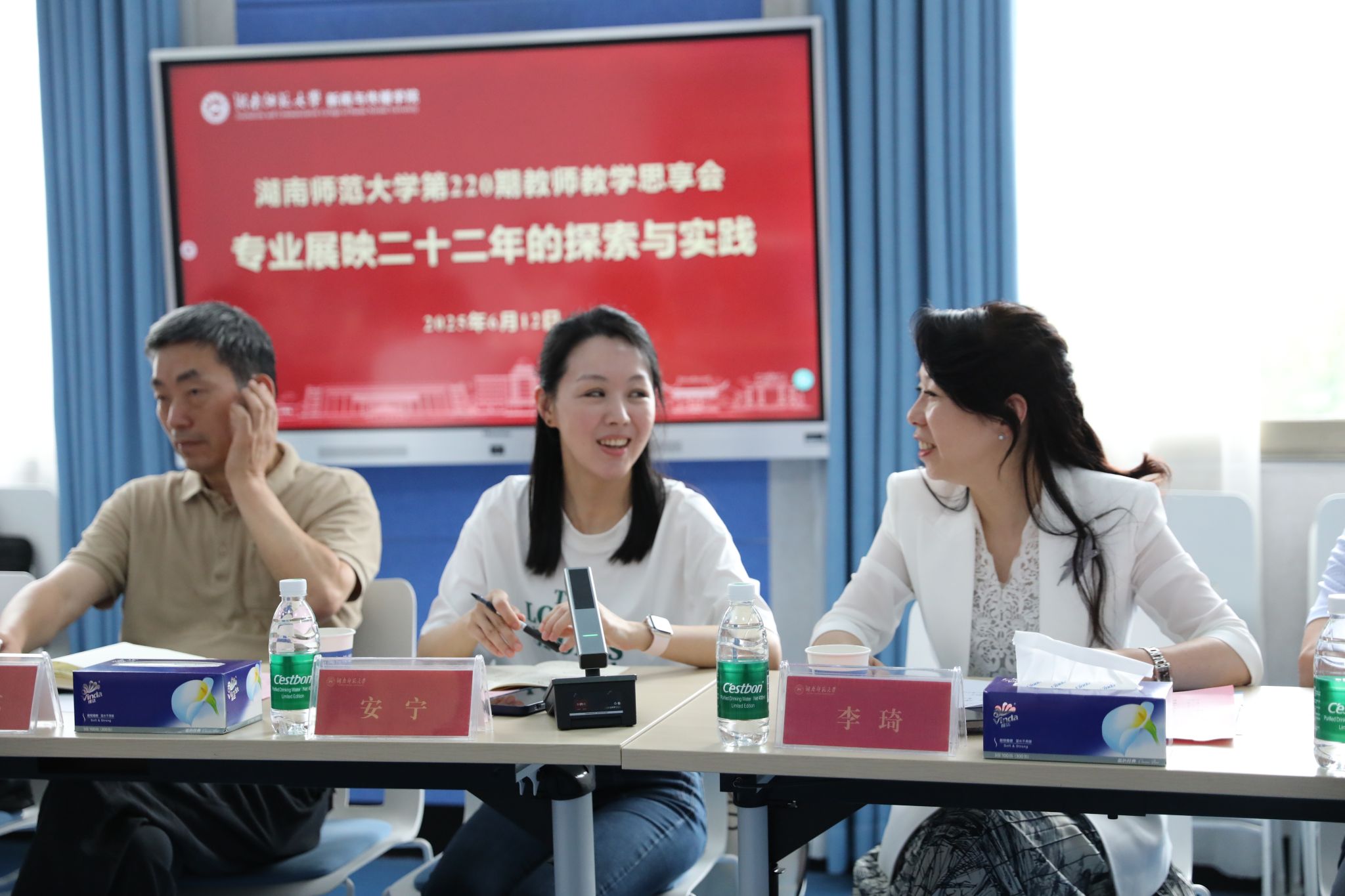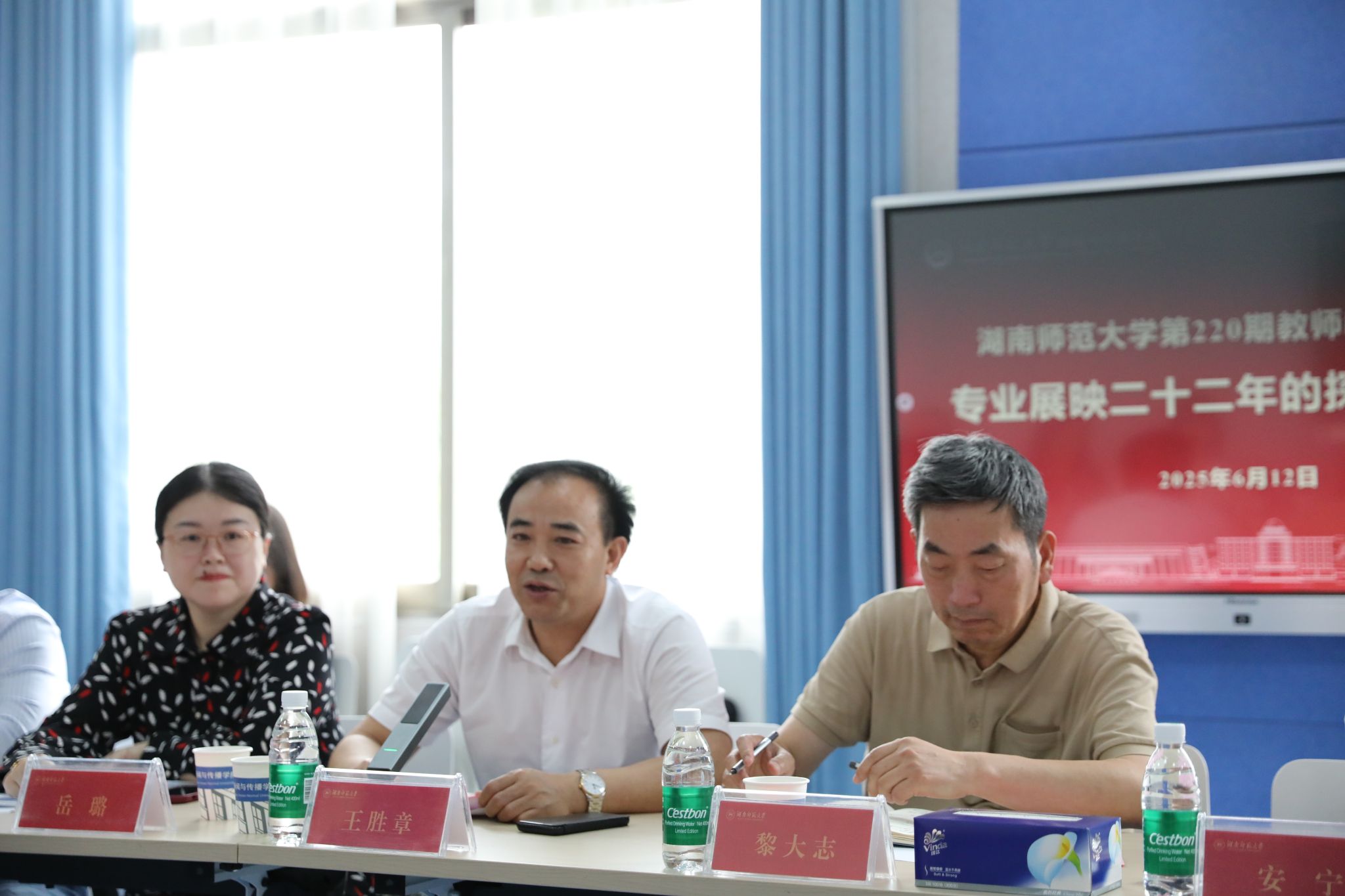 (通讯员 刘泽裕)2025年6月12日,我校第220期教师教学思享会在我院402智慧教室举行。在2022级展映落下帷幕之际,本期思享会以“专业展映二十二年的探索与实践”为主题,来自新闻学、编辑出版学、网络与新媒体、播音与主持艺术与广播电视编导等专业的五位展映指导教师代表作主题发言,深入探讨专业展映在本科教育中的创新应用与实践路径。院党委书记王胜章、副院长王海刚出席会议,本次思享会还邀请了校督导委员会主任黎大志、教务处副处长安宁担任讲评嘉宾。会议由我院教学副院长李琦主持。