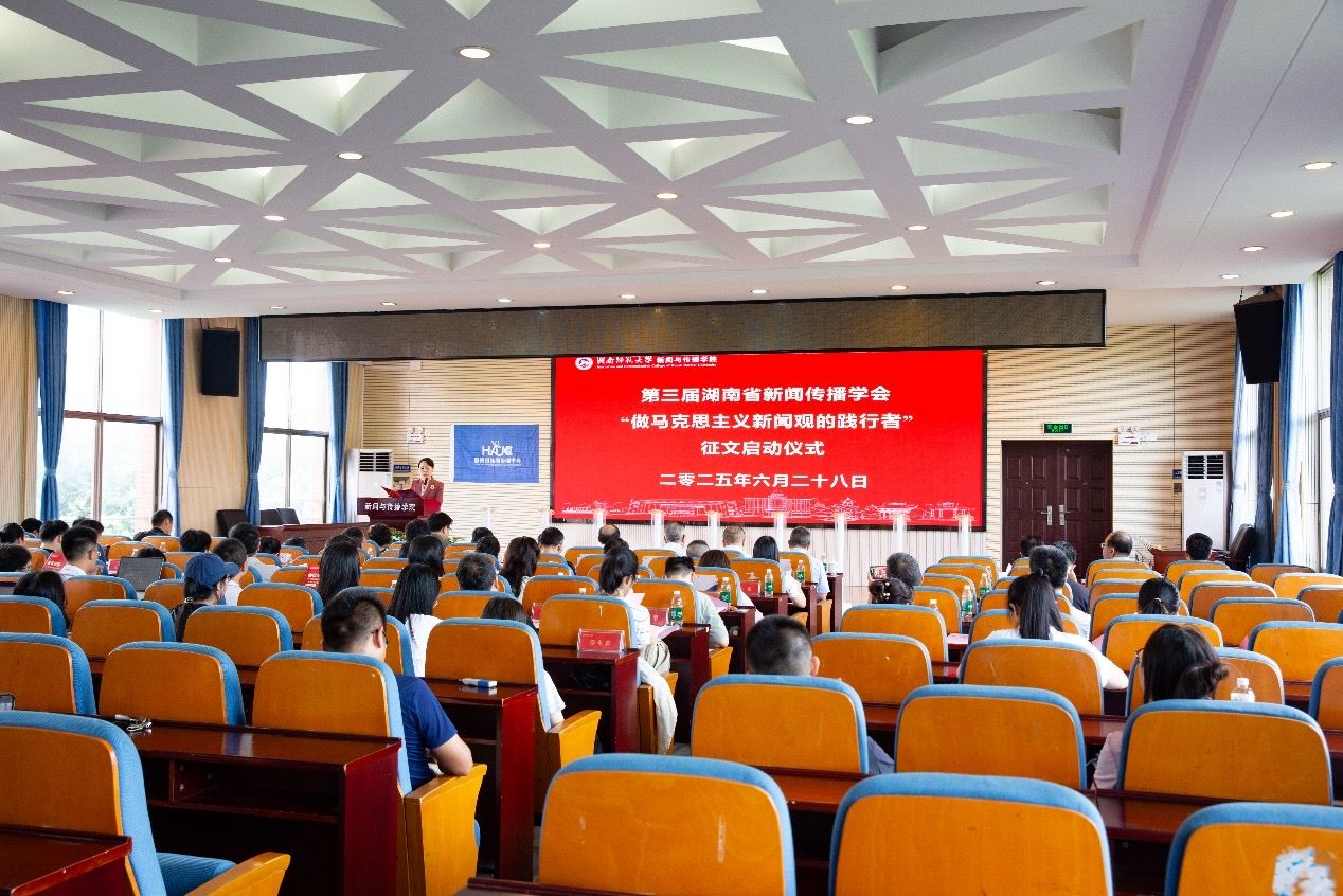 (通讯员:汤敏 李小青 摄影:李伟)2026年6月28日上午,第三届湖南省新闻传播学会“做马克思主义新闻观的践行者”征文活动在我院书山论坛启动。湖南省委宣传部二级巡视员、湖南省新闻工作者协会副主席杨勇,吉首大学党委书记廖志坤,湖南师范大大学党委委员、副校长唐贤清,湖南大学yl23411永利集团特聘教授、马克思主义新闻观研究中心主任雷跃捷等领导莅临启动仪式,省内多所高校新闻传播学院的领导、师生以及多家新闻出版广电等媒体单位的领导出席会议。
