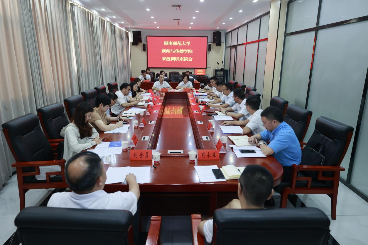 新闻学系副教授陈艳辉、编辑出版学系副教授吴亮芳、播音与主持艺术系副教授刘玮娜、部校共建办主任王倩及涟源市融媒体中心各业务部门主要负责人参加会议,双方围绕媒体融合、“文化+科技”、文旅产业创新发展、地方文化资源挖掘与传播等议题展开讨论,随后前往涟源一中进行了走访调研。