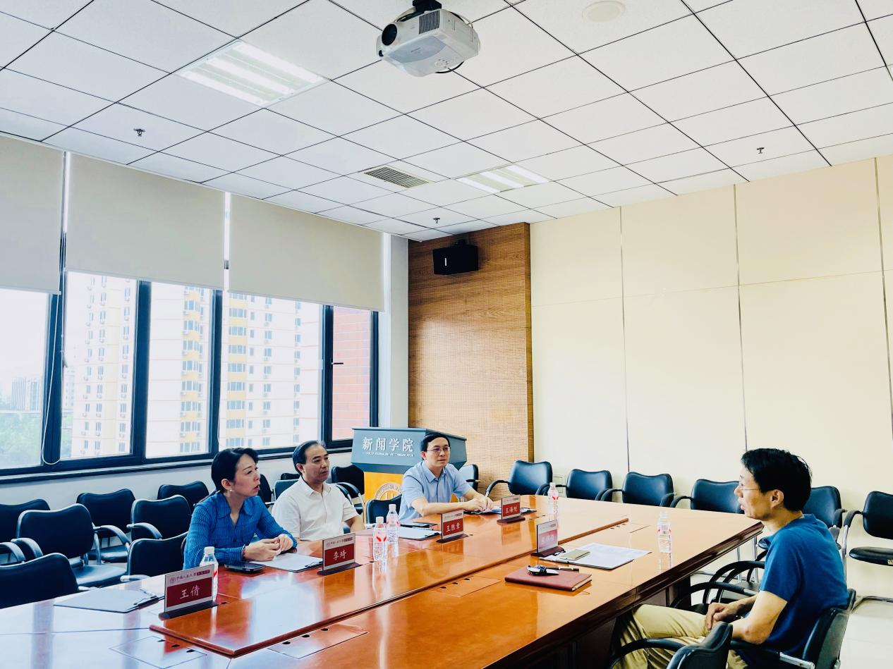 副院长王海刚全面总结了近年来双方合作取得的成果,希望以此次交流为契机,进一步加强两院沟通合作,恳请人大新闻学院能在学科建设、高层次人才引育、师生访学等方面给予进一步指导与帮扶,助力我院新闻传播学科实现更好发展。