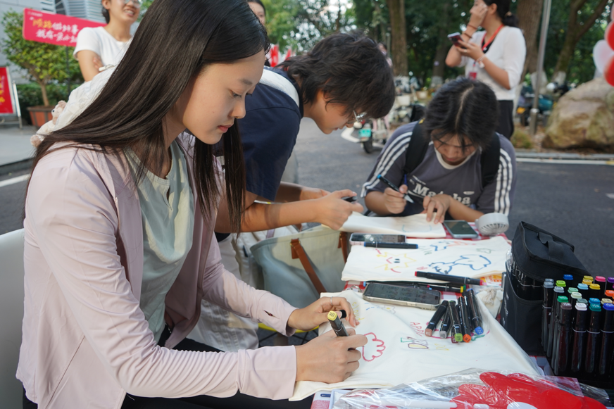 在“图书盲盒”快闪站,师生们积极参与帆布书袋手绘创作。大家拿起手中的画笔,画出星空、学校、书籍等美丽的图画并写下自己的祝福,再配上手写明信片放进帆布袋中。"这本书带你去看更大的世界""愿你在文字里找到勇气"……一句句真挚的话语,让每个帆布袋都成为了独一无二的"爱心包裹"。后续这些帆布袋将与消毒杀菌后的二手书,由捐书机构“满天星”随机组合成“图书盲盒”,定向派发给偏远地区儿童。