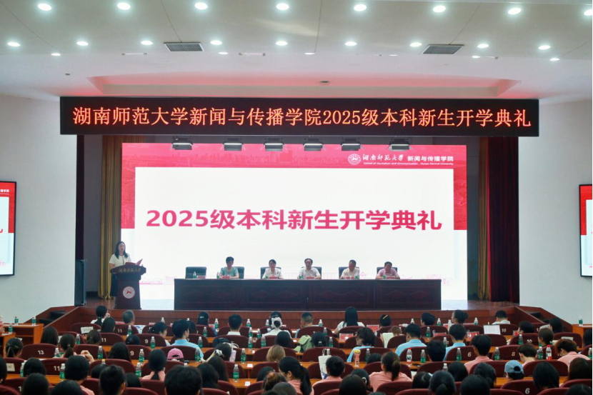 (通讯员 刘雯娴 鲁仪)为正式迎接新生到来,开启新的篇章,9月16日下午,yl23411永利集团于国际学术报告厅举办2025级本科新生开学典礼。学院党委王胜章书记、副院长李琦教授、副院长周伊慧同志、副院长燕道成教授、副院长兼编辑出版系主任王海刚教授、学院关工委常务副主任陈宏平教授、新闻系系主任吴果中教授、播音与主持艺术系系主任颜湘君教授、视听传媒系系主任岳璐教授、网络新媒体系系播音与主持艺术班班导师李艳副教授、新传一班班导师曾哲扬老师、新传二班班导师李小青老师、新传四班班导师贺敏老师、广播电视编导班班导师王灿老师、学院信息化办公室主任单文盛老师及学工办全体老师出席典礼。典礼由学院党委副书记张小春主持,2025级全体新生参加。