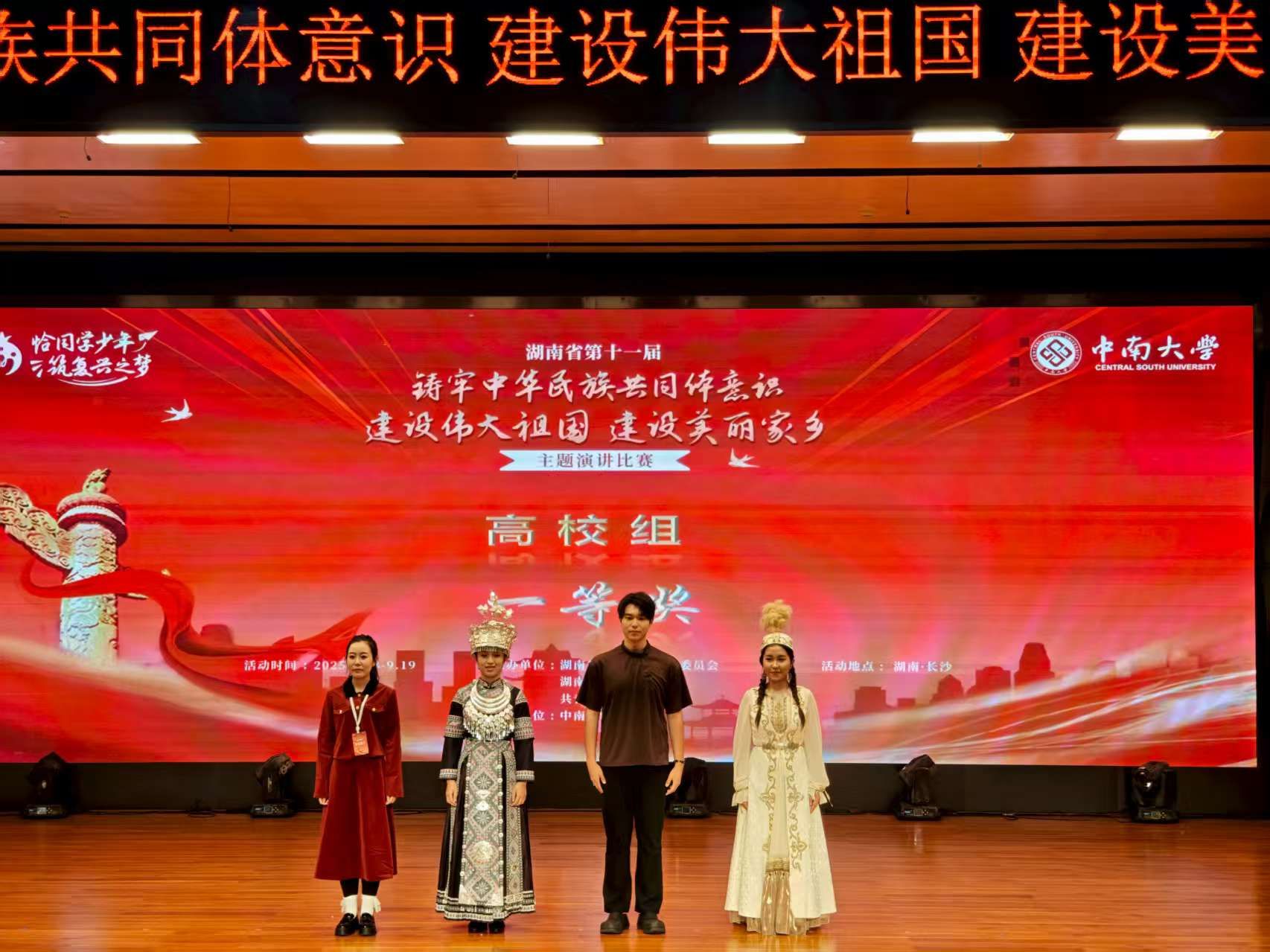 (通讯员 陈卓)9月18日,湖南省第十一届“铸牢中华民族共同体意识 建设伟大祖国 建设美丽家乡”主题演讲比赛在中南大学举行。yl23411永利集团2023级播音与主持艺术专业学生蒙咨默荣获高校组一等奖。