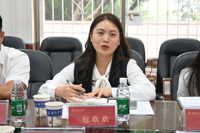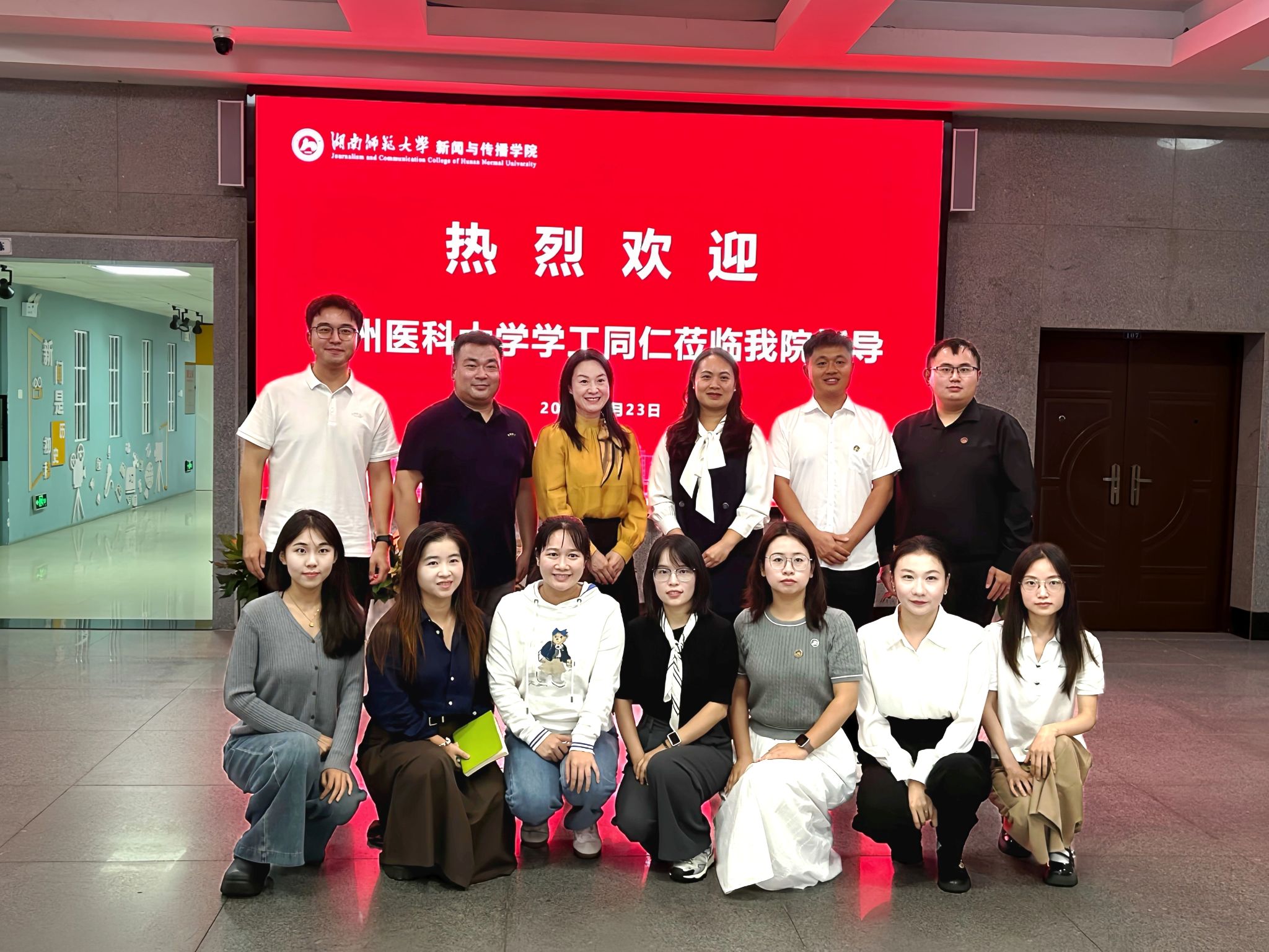 (通讯员 梁婧 张思博)为交流辅导员工作室建设经验、助力学生工作高质量发展,2025年9月23日下午,贵州医科大学药学院党委副书记包欢欢,“杏林医语”辅导工作室成员梅小雪、刘文壮,“文化小苑”辅导室工作成员陈卫,“医语蓝图”辅导员工作室成员邓天芝、韩艺,运动与健康学院辅导员艾登科前来学院调研交流。学院党委副书记张小春,外国语学院学工办主任张元强,新传院学工办主任欧阳丹玲,新传院团委书记陈安琪,2022级辅导员王洋出席本次座谈会。2023级辅导员张江汀主持本次会议。
