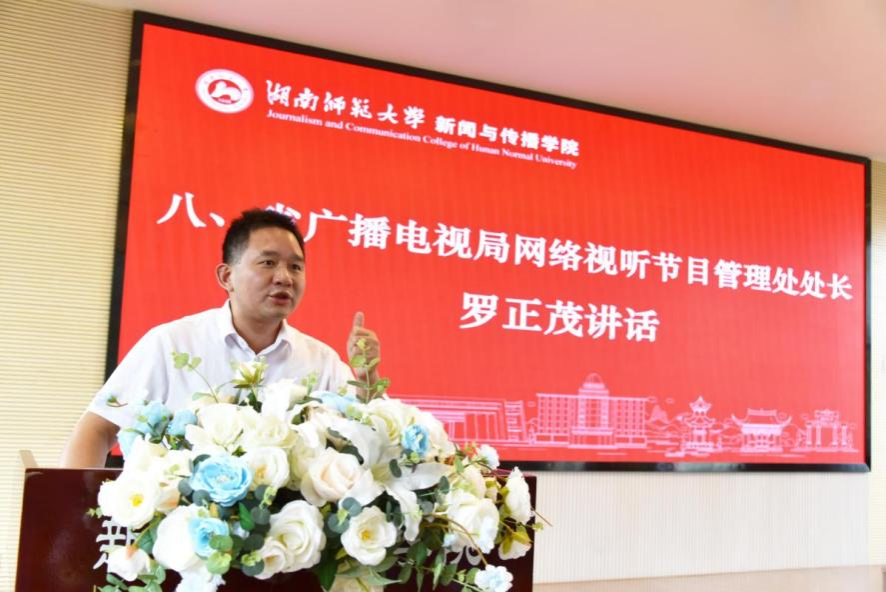罗正茂提出,湖南微短剧产业已进入全国第一方阵,当前急缺编剧、演员等新型视听人才。他鼓励同学们积极参与实践,“在炮火中训练”,同时更多接受书籍的熏陶。他期待与高校共育兼具技术应用能力与正确价值观的新型传播人才。