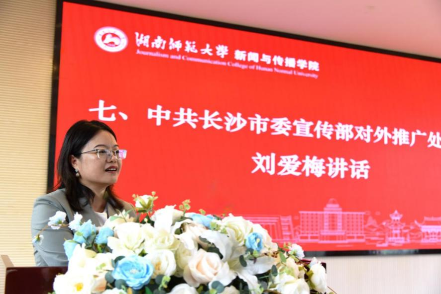 刘爱梅结合国际传播的工作经验,对同学们提出三方面建议:一是国际传播是时代使命,需持之以恒、积微成著;二是真诚叙事是跨越文化隔阂的关键,普通人的日常影像也可成为国家名片;三是应发挥Z世代在传播中的创造力。她介绍了长沙进行国际传播的重点课题,期待与学院共建微专业,打造国际传播新高地。