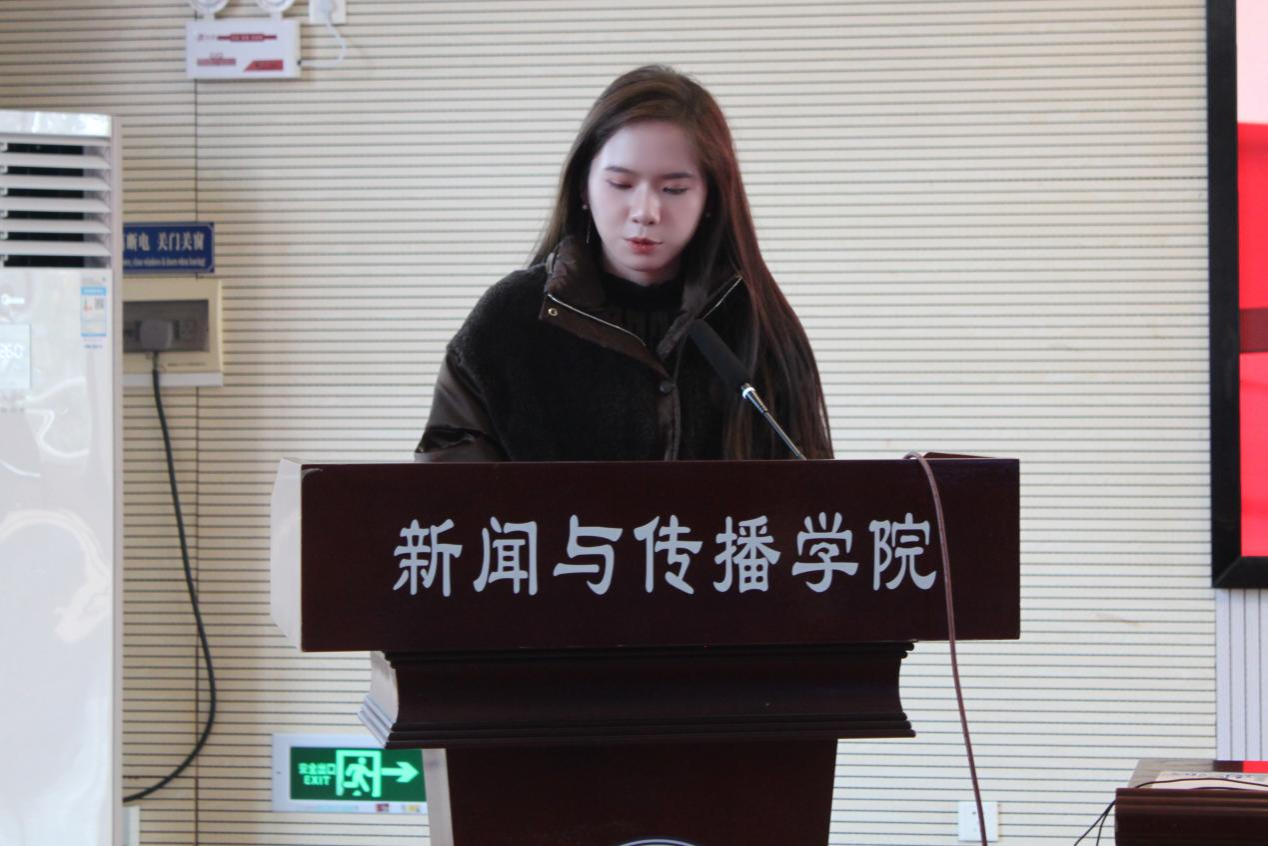 主讲人廖茂邱以《硝烟中的拂晓之光——从彭雪枫将军的故事读懂抗战精神》为题,讲述抗战英烈彭雪枫将军的故事,激励学生传承伟大抗战精神,将家国情怀融入人生理想;主讲人梁红凯以《战旗上的血脉传承》为题,生动再现了抗战时期“田家会英雄连”的壮烈事迹,分享了自身服役期间的军旅见闻与感悟,呼吁学生传承英雄精神,肩负时代担当;主讲人张子荷以《赓续抗战斗争品格,勇担新传时代使命》为题,从新闻传播学的专业视角连接抗战历史和全会精神,引导学生以新传人的专业素养和责任担当为新时代民族复兴奉献青年力量;主讲人张思羽以《脊梁从山间挺起,奋斗为时代作答》为题,以基层实践故事阐述四中全会精神,号召学生投身实践,在时代浪潮中勇毅逐梦。