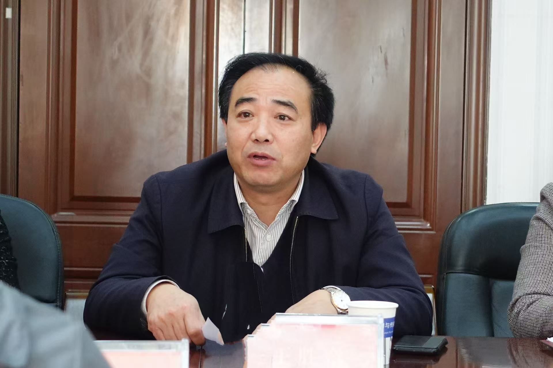 (通讯员 周露)12月1日下午,湖南竖店影视集团有限公司董事长李政一行六人莅临我院考察交流。我院党委书记王胜章、副院长李琦出席会议,视听传媒系教师朱奕亭、丁忠伟、石力夫、张磊参与交流,会议由视听传媒系主任岳璐主持。