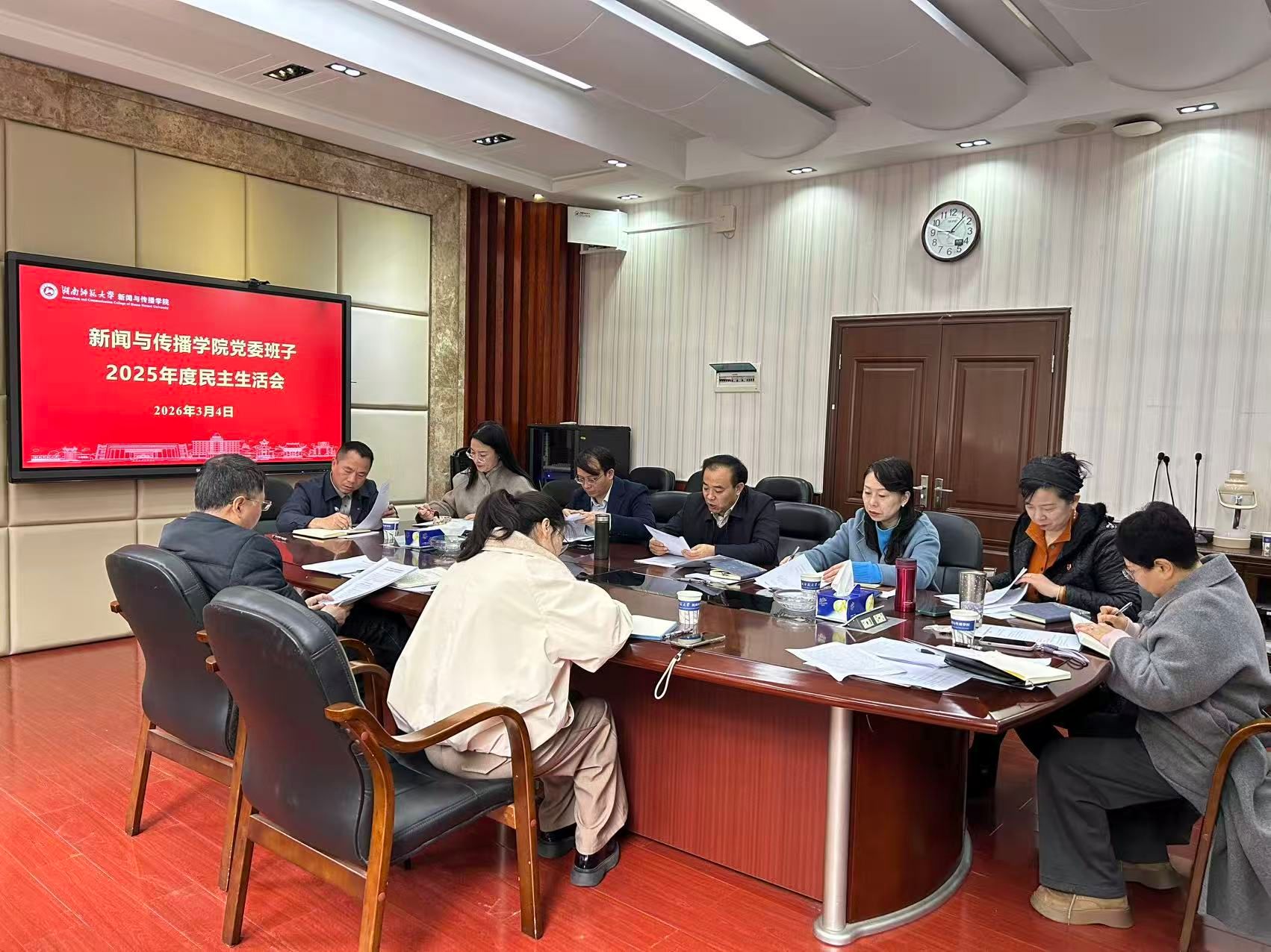 (通讯员 彭丽)为深入学习贯彻习近平新时代中国特色社会主义思想,全面落实党的二十届四中全会精神,锲而不舍落实中央八项规定精神,推进作风建设常态化长效化,按照学校党委统一部署,2026年3月4日,我院党委领导班子2025年度民主生活会在学院二楼会议室召开。学校第十督导组匡尹俊同志及督导组相关成员到会指导,学院党委领导班子成员参加会议,院党委书记王胜章主持会议。