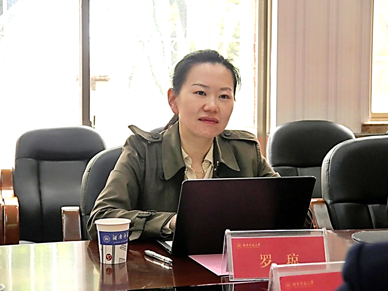 李琦首先对罗琼一行的到来表示热烈欢迎,并详细介绍了我院的发展历程、学科布局、师资力量及人才培养成果。她指出,我院作为湖南省最早设立的新闻传播学院之一,在博士点建设、博士后科研流动站培育、湖南省教学成果奖申报等方面积淀深厚、成效显著。面对新一轮科技革命与产业变革对新闻传播领域带来的机遇与挑战,我院正主动求变、积极突破,聚焦复合型、创新型传媒人才培育目标,不断优化人才培养方案,推动新闻传播教育与时代发展同频共振。