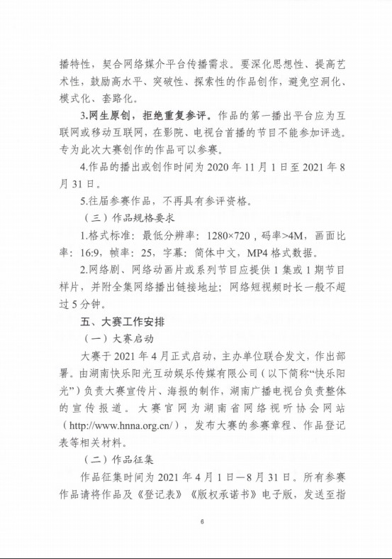 湖南省第六届网络原创视听节目大赛的实施方案(湘广电发【2021】28号)现已发布,我院是赛事的协办的单位之一,希望大家积极参赛。