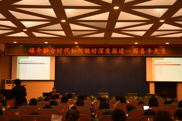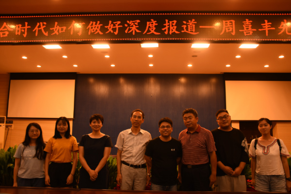 (通讯员 马思奇 朱玲玉)9月14日晚,澎湃法制栏目主编、深度报道记者周喜丰先生作客新传院书山论坛,为师生带来了题为《媒介融合时代如何做好深度报道》的讲座。院党委书记银海强、副院长周国清、新闻系副教授陈艳辉等参加了此次讲座。讲座由周国清主持。