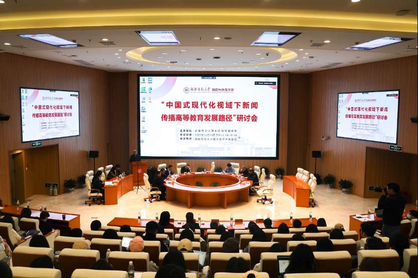 研讨会上,与会专家围绕“中国式现代化视域下新闻传播高等教育发展路径”的主题展开了深入学术研讨。专家们从大数据、人工智能、国际传播、中国自主新闻传播知识体系等方面谈及中国式现代化视域下,我国未来新闻传播高等教育领域的发展趋势。专家们一致认为高等教育者和研究者要用心、用情、用力地从学科定位、专业划分、课程设计、教材规划等多方面、全方位进行革新,推进新闻传播学科体系、学术体系、话语体系的建设,构建具有中国特色的新闻传播自主知识体系,建设具有中国特色、时代特征的国际传播话语体系,建设为党育人、为国育才的新闻传播人才培养体系。(光明日报全媒体记者 赵嘉伟 通讯员 刘偲睿 项和烽)
