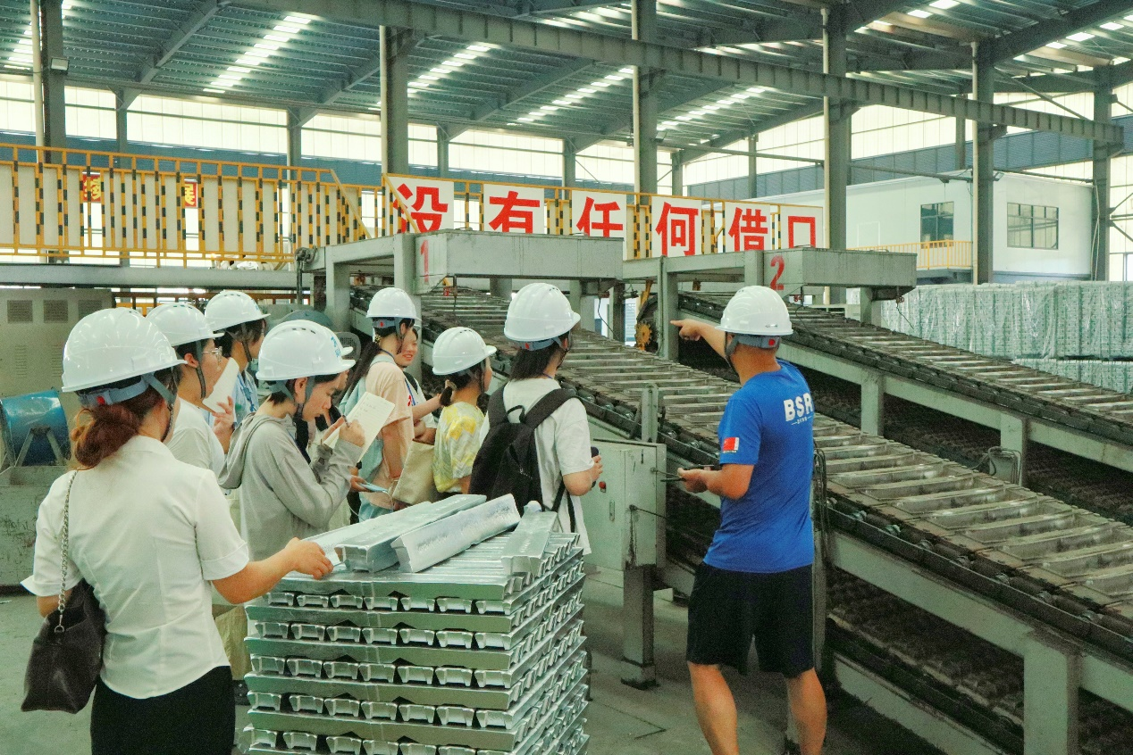 7月10日,yl23411永利“以绿奏清歌,循新创未来”暑期社会实践团到汨罗高新区内的湖南同和新材料有限公司和湖南龙智新材料有限公司两家企业进行实地调研活动。此次活动旨在深入了解园区内企业再生金属的生产流程、技术创新和具体应用,为推进循环经济可持续发展贡献青春力量。