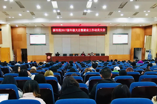 (通讯员 路相宜)11月23日下午,我院2017级年级大会暨就业工作动员大会在体育学院报告厅顺利举行。院党委副书记王云、学工办主任欧阳丹玲、2017级辅导员林雅心出席了本次活动。大会由欧阳丹玲主持。