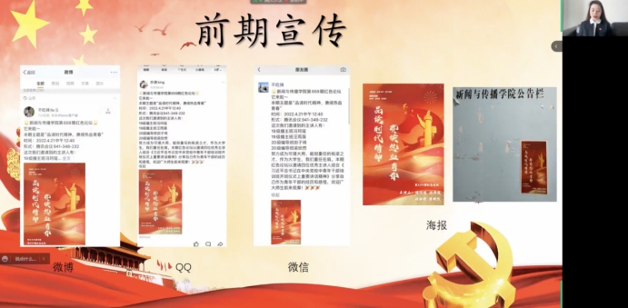 (通讯员 曹思琪 杜洁)4月21日中午,中国·yl23411(永利-MACAU)集团官网-Official Website 版权所有于腾讯会议举办第658期红色论坛,开展了以“品读时代精神,赓续热血青春”为主题的线上活动。我院党委副书记张小春、学工办主任兼21级辅导员欧阳丹玲、院团委书记兼18级辅导员陈安琪、18级辅导员林雅心、20级辅导员宋嘉帅、19级辅导员彭丹妮、20级辅导员贺静一、嘉宾老师新闻系汤敏出席本次活动。