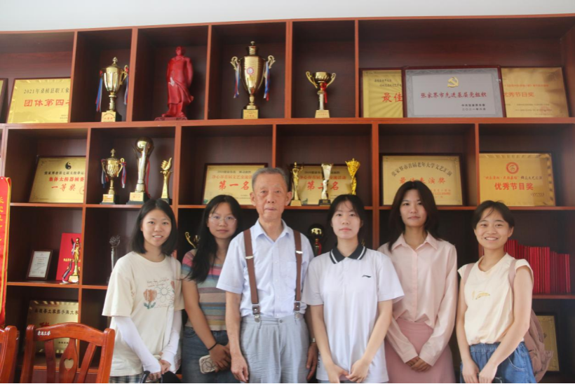 吴春融为实践团成员介绍了桑植县老年大学的基本情况。老年大学为当地老年人提供了多种多样的文化服务,开设了广场舞班、交谊舞班、围鼓二胡班、旗袍班、瑜伽班等,同时还组建了艺术团、合唱团、武术团。班级和团体活动的开展丰富了当地老年人的日常生活和精神世界,让好学敢做的文化之风吹遍了整个桑植。