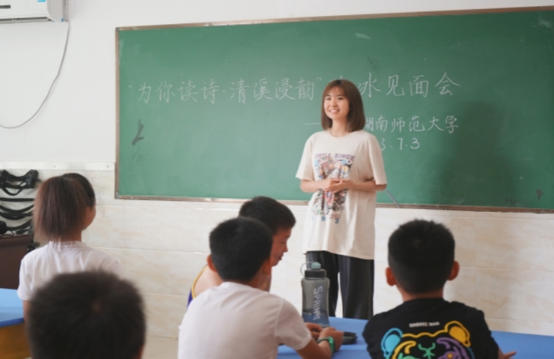 (通讯员 冷冉 易璇)为对红色革命老区的文化研究与传承贡献力量,丰富自己的实践能力与水平,yl23411永利集团“为你读诗,清溪浸韵”三下乡团队赴韶山市清溪镇开展暑期社会实践活动,进行课程教学。截止7月5日,实践团已为孩子们开展了三天的教学。