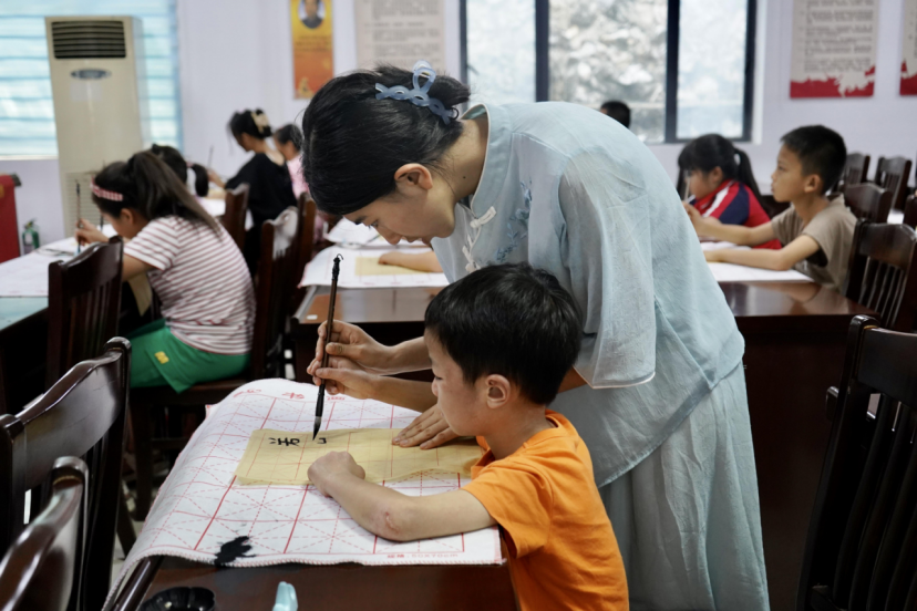 (通讯员 王兆星)7月6日,我校新传院“爱心湘传,童心支研”暑期社会实践团与宁乡市煤炭坝社区联合开展的书法文化课程于煤炭坝社区公共服务中心进行教授,实践团成员杨佳逸、蔡田甜担任授课教师。
