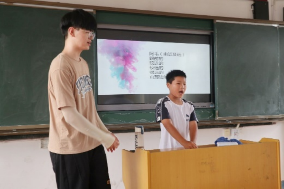 在支教过程中,团队成员们不仅致力于普通话的推广,还注重培养学生的自信心和表达能力,他们鼓励学生勇敢发声、克服害羞和紧张,通过练习和演讲帮助他们提高口头表达和沟通能力。许多学生在活动结束时,都能够自信地站在讲台上,流利地向全班同学讲寓言故事,同时,大部分同学对于即将开展的文艺汇演热情高涨,踊跃报名参加国学诵读节目,期望能在舞台上展现自己的学习成果。