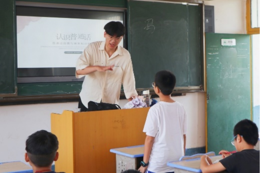 (通讯员 牛巧慧 吴裕婷 王之未)为了全面落实国家语言文字方针政策,弘扬中华民族优秀传统文化,提高乡村地区小学生的语言能力,增强全体学生语言规范意识和推广普通话参与意识,为讲好乡村故事和中国故事打好基础,7月2日至7月9日,我校新传院“薪传星梦”——赴邵阳市大祥区暑期社会实践团深入基层一线,开展了普通话知识教学系列课堂。