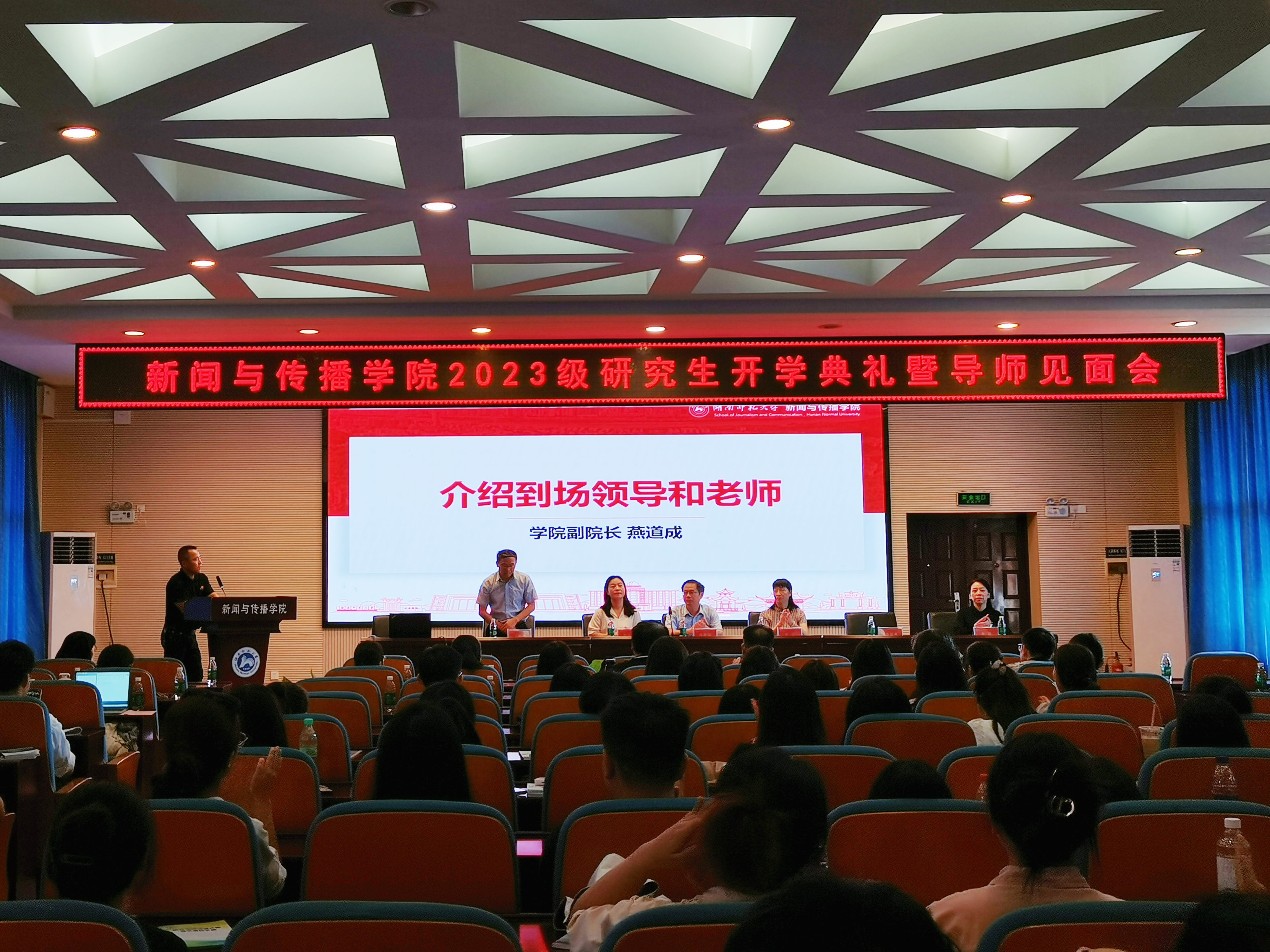 (通讯员 张辰龙)9月19日上午,我院在书山论坛顺利举行2023级研究生开学典礼暨导师见面会。学院领导、部分研究生导师以及2023级全体研究生新生参加了典礼。开学典礼由2023级新闻与传播专业硕士研究生李梓嘉主持。