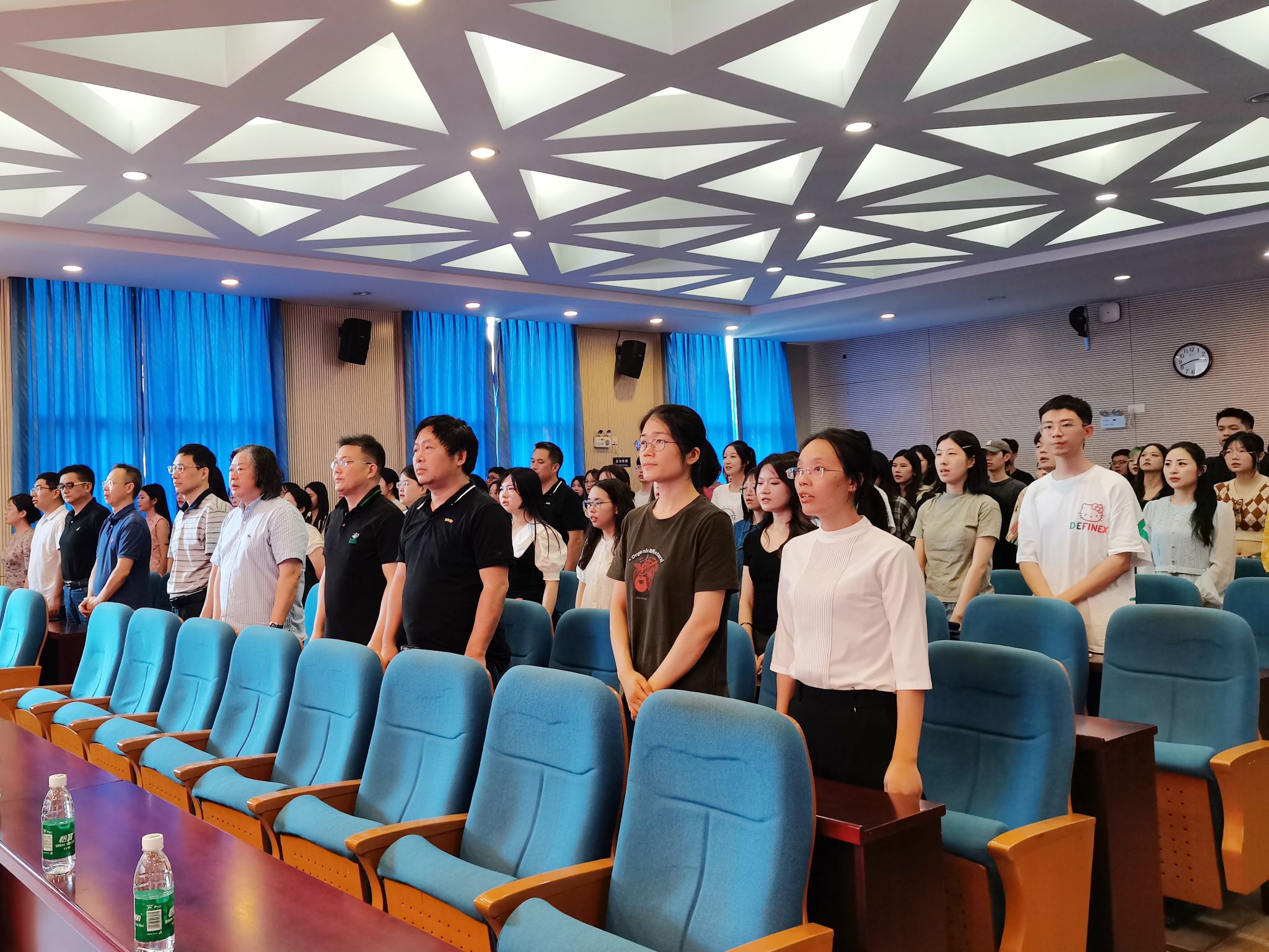 学院副院长燕道成向全体新生介绍到场的领导和老师。随后,全体师生起立奏唱国歌,开学典礼在庄严的国歌声中拉开帷幕。