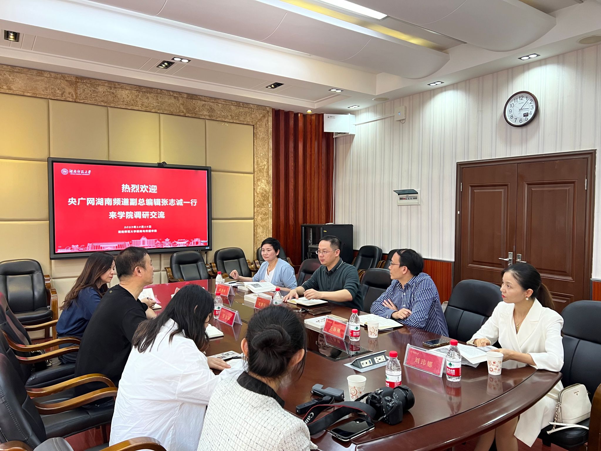 王海刚对央广网湖南频道各位领导和专家的到来表示热烈地欢迎,并就合作模式与央广网湖南频道负责人交换意见。双方就校媒深度合作、共建实习基地、人才培养等领域进行充分交流,达成合作意向,尽快推动合作协议落地。