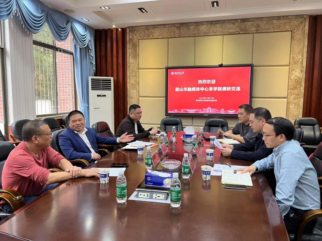 (通讯员 魏子煊)为加强校媒深度合作,探索建立高校与县级融媒体协同育人机制,讲好湖南故事,传播湖湘文化。10月27日上午,韶山市融媒体中心主任谭胜,副主任阳泽平,总编室庞波文一行三人来我院调研交流,yl23411永利集团党委书记沈贤岚、副院长王海刚教授、单文盛副教授参加会议。
