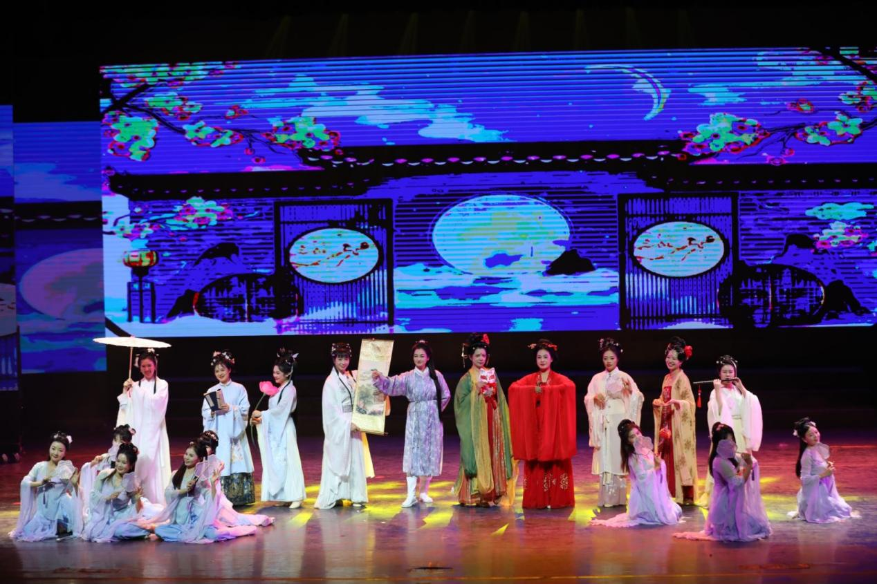 晚会展现了新传学子的青春风采和精神面貌。原创说唱《麓山行记》,带领观众跟随跃动的节拍走近麓山、走进师大。舞蹈和舞蹈串烧《舞动青春》《沁莲》,随音乐律动绽放美丽青春。歌曲联唱《青春的色彩》,以丰富色彩绘就青春画卷。晚会不仅有学生的演出,还有老师的参与,学院的女教师们和男教师们分别带来了国风走秀节目《雅·韵》和歌曲串烧《New boys》,引发全场欢呼。