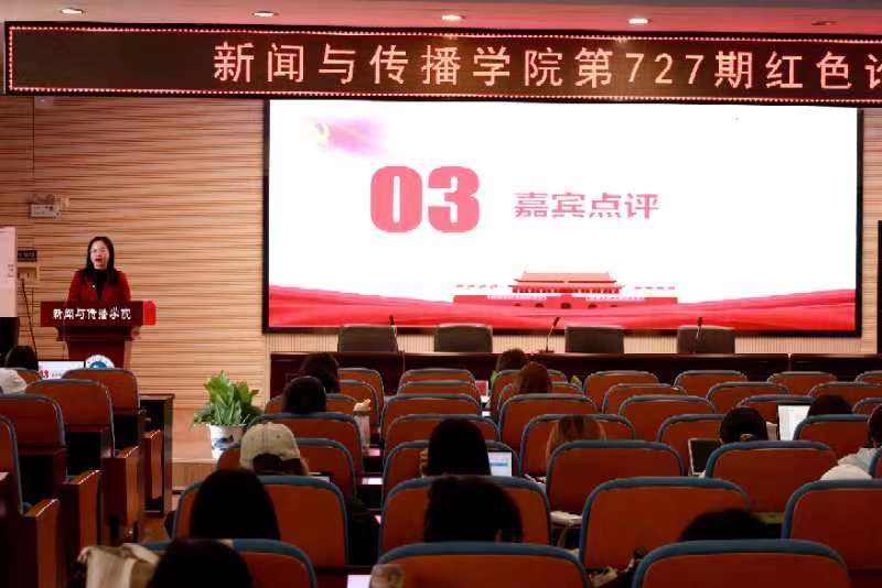 张小春作最后的点评总结。她认为新传学子应该牢记党的新闻舆论工作者的“四十八字方针”——高举旗帜、引领导向、围绕中心、服务大局、团结人民、鼓舞士气、成风化人、凝心聚力,澄清谬误、明辨是非,联接中外、沟通世界,并借此鼓励新青年胸怀祖国,奉献青春,以实际行动践行青春使命,表达强国决心。她希望新时代青年热爱祖国,热爱自己的事业,凭自强不息奋发不止的精神实现自我人生价值。