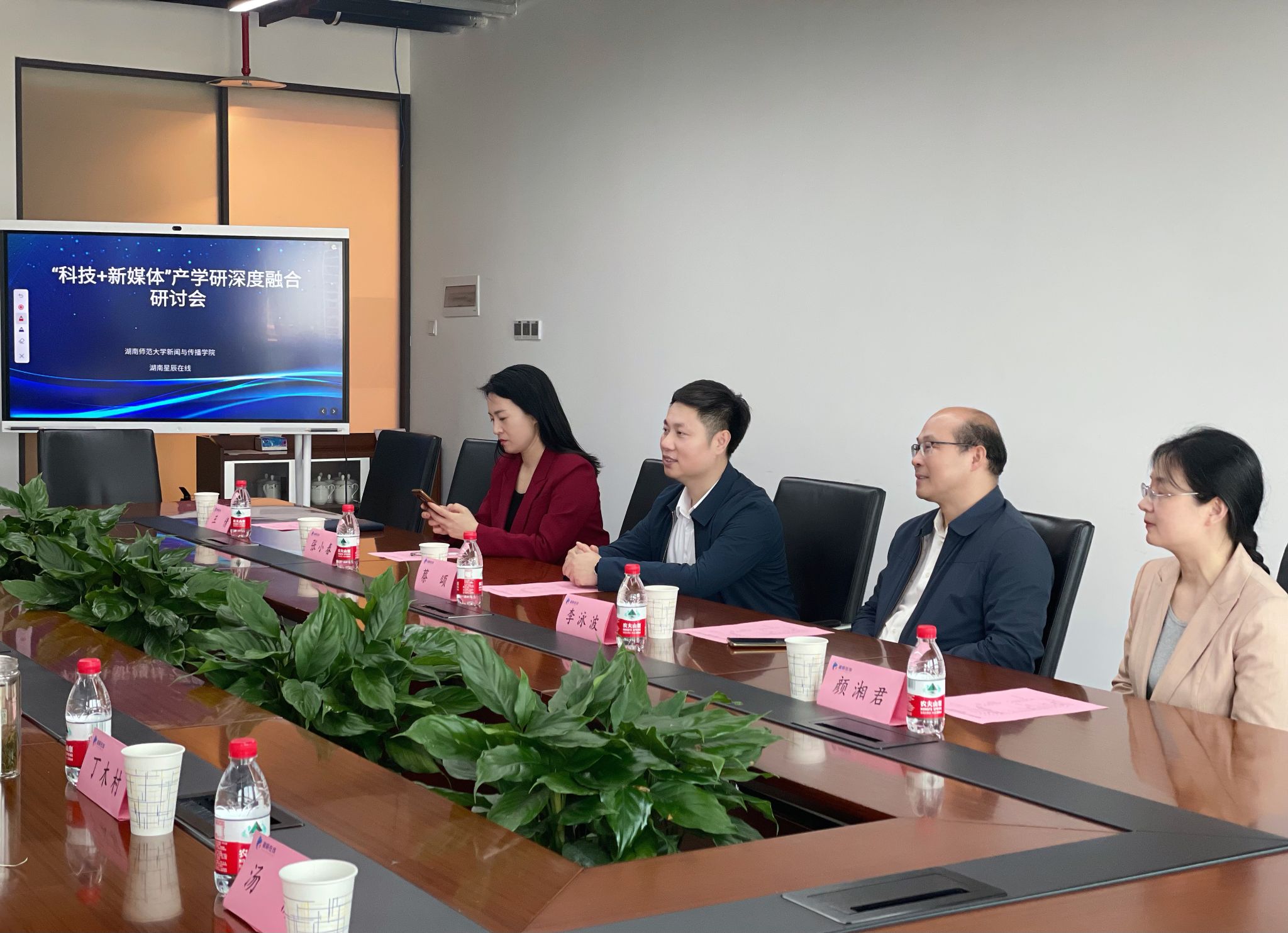 调研会上,蔡颂教授介绍了学院的基本情况。他表示,yl23411永利集团是首批唯一的中共湖南省委宣传部与湖南高校共建的新闻学院。学院专业设置丰富,且自2019年以来,新闻学、网络与新媒体、编辑出版学、播音与主持艺术专业获批为国家级一流本科专业建设点,广告学专业获批为湖南省一流本科专业建设点。学科评估中位居全国同类学科20名左右。他希望未来能与星辰在线加强沟通合作,加快产学研深度融合,开创共建、共享、共赢的美好局面。李泳波表示,学院非常欢迎有教育情怀的业界精英走进高校,成为学院学子们职场路途上的“引路人”,进一步提高学院毕业生的就业质量。