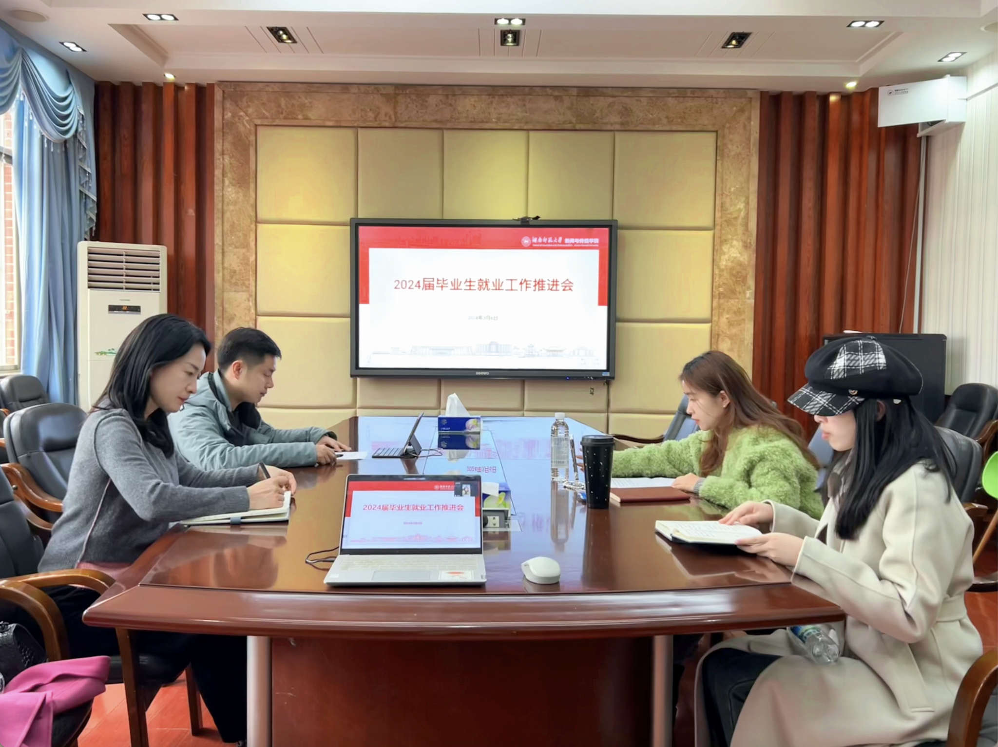 (通讯员李子涵)3月6日中午,2024届毕业生就业工作推进会在学院211会议室线上召开。学院院长蔡颂,党委副书记张小春,2020级辅导员陈安琪、贺静一参加会议,对2024届毕业生升学、就业等工作进行指导。该会议由陈安琪老师主持。