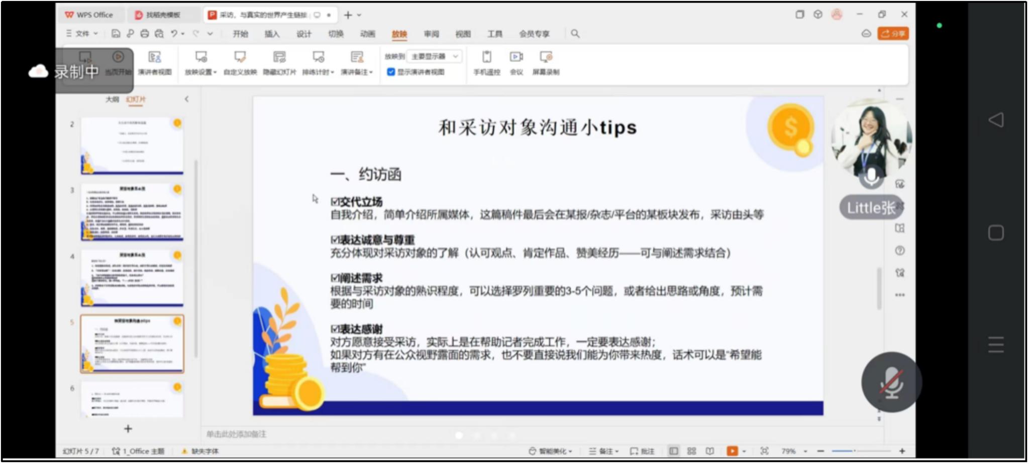 (通讯员刘远菲)3月7日晚上七点,新传院团委青创部举办了以“采访,与真实的世界产生链接”为主题的精勤讲堂讲座。会议由新传院22级新闻班张天爱主讲,向新传学子分享新闻采访的经验。