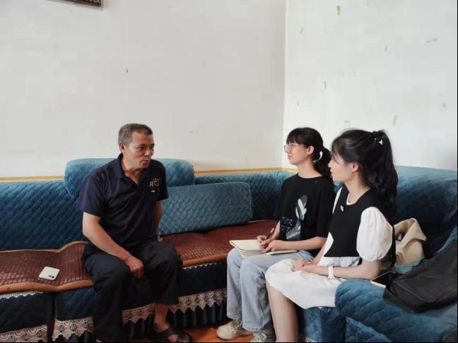 “新风小分队”到达贺石桥村后,在贺石桥村书记颜乐的安排下对老厂长贺志强、“美丽屋场”理事长万正良、百人艺术团团长曾义军进行采访并走访村民发放调查问卷。