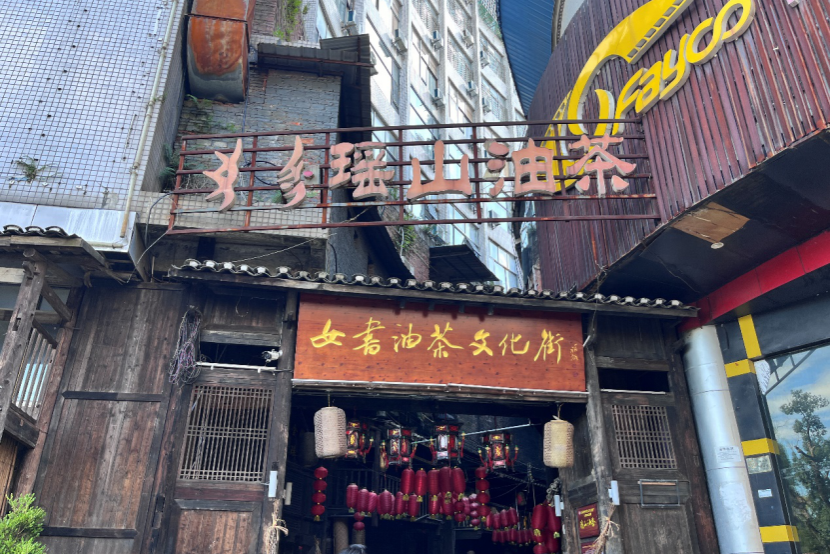 随后,实践团成员跟随杨丽参观了女书油茶文化街,其内部古风民族特色的建筑和装饰尽显瑶族文化魅力。