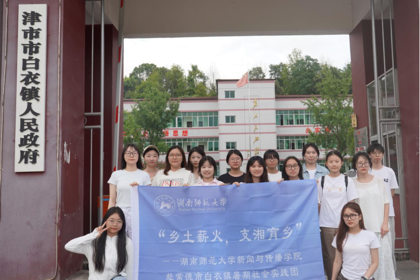 实践团在白衣镇人民政府门口拍照