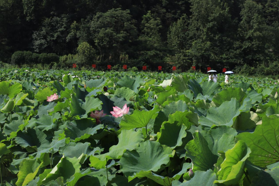在岩板铺村书记唐国辉的带领下,团队部分成员前往蔡家湾的百亩荷花基地进行实地走访。据唐国晖介绍,蔡家湾的百亩荷花是岩板铺村着重打造的特色旅游项目,每年会吸引不少周边县镇居民过来打卡拍照。同时,村民也会售卖一些当地特色农产品。