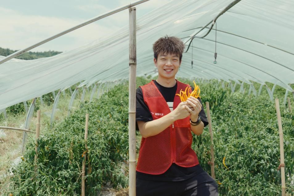 团队成员来到生产园区体验采摘黄贡椒