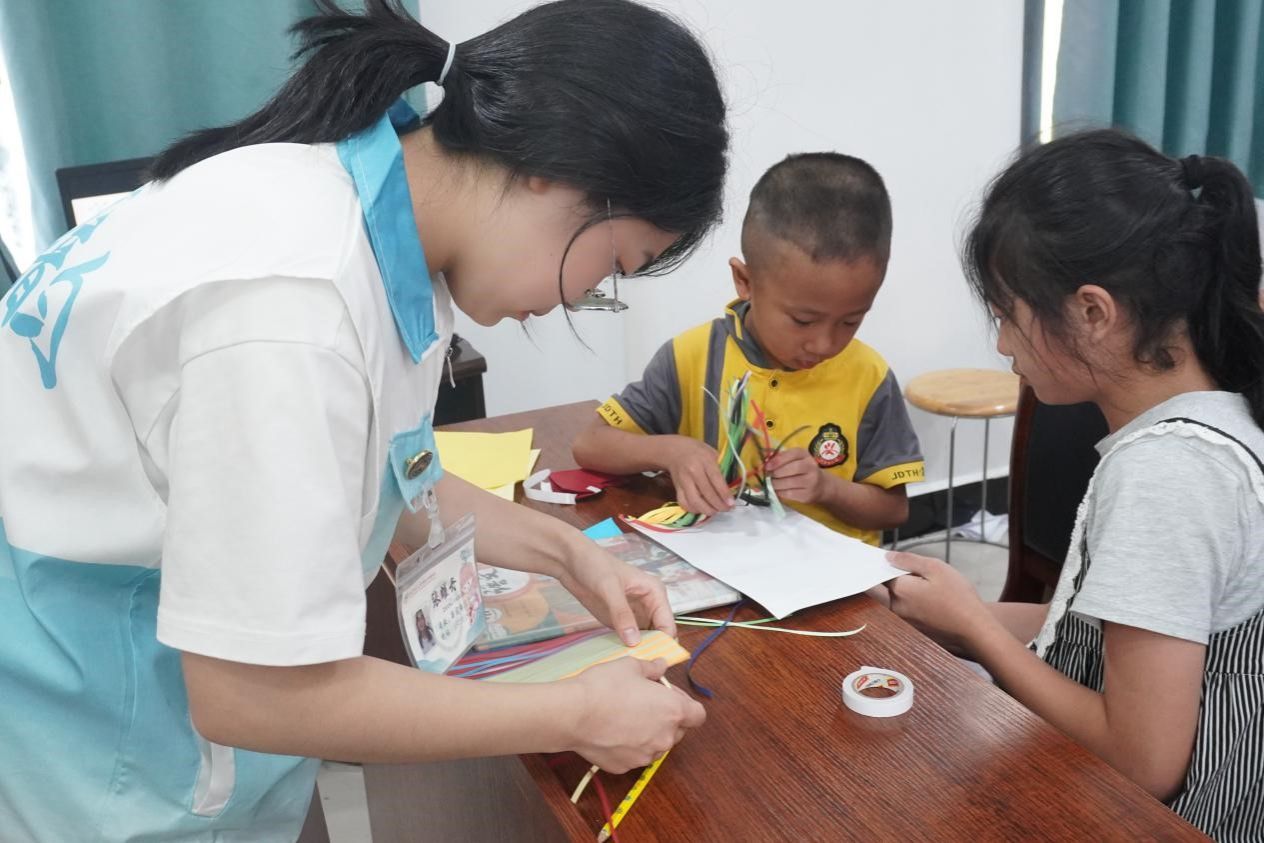 (通讯员 张耀丹 鲍秋彤)7月19日,yl23411永利集团“智传乡韵”暑期社会实践团走进怀化市沅陵县岩板铺村委会,给当地学生带来了手工制作扇子的美育课程。