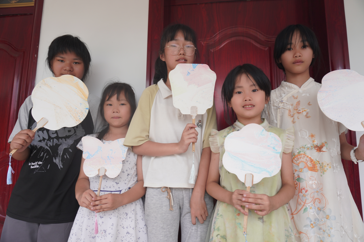 扇子以其独特的艺术形态,诠释着东方美学的神韵,演绎着中国传统文化的深厚内涵,是当今传播文化、展现风貌的重要载体。实践团将传统扇文化与现代美育相结合,将漆扇与手工编织扇的制作带到了课堂。